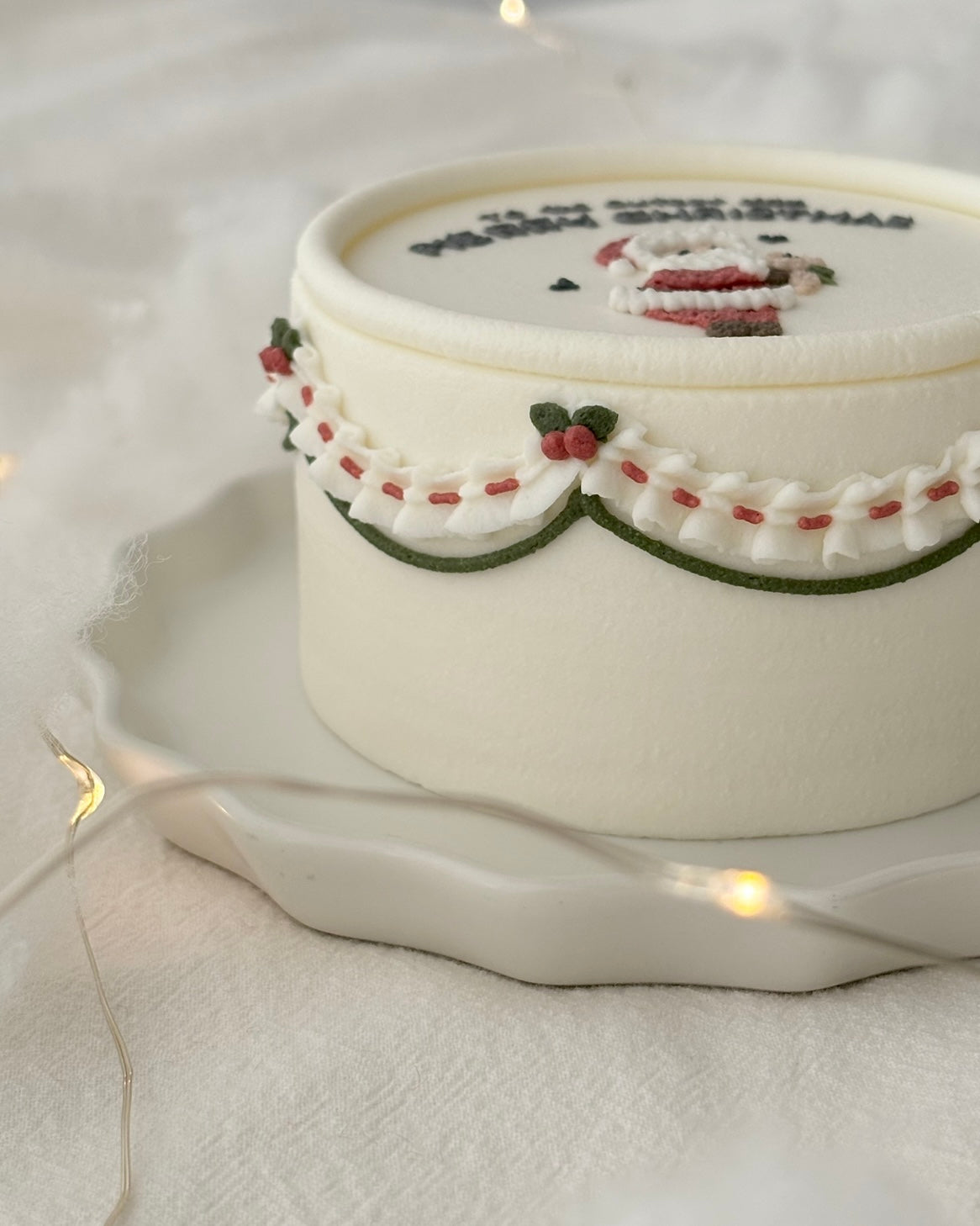 今年のケーキは、わんちゃんを愛おしく抱きしめるサンタさんのデザイン。