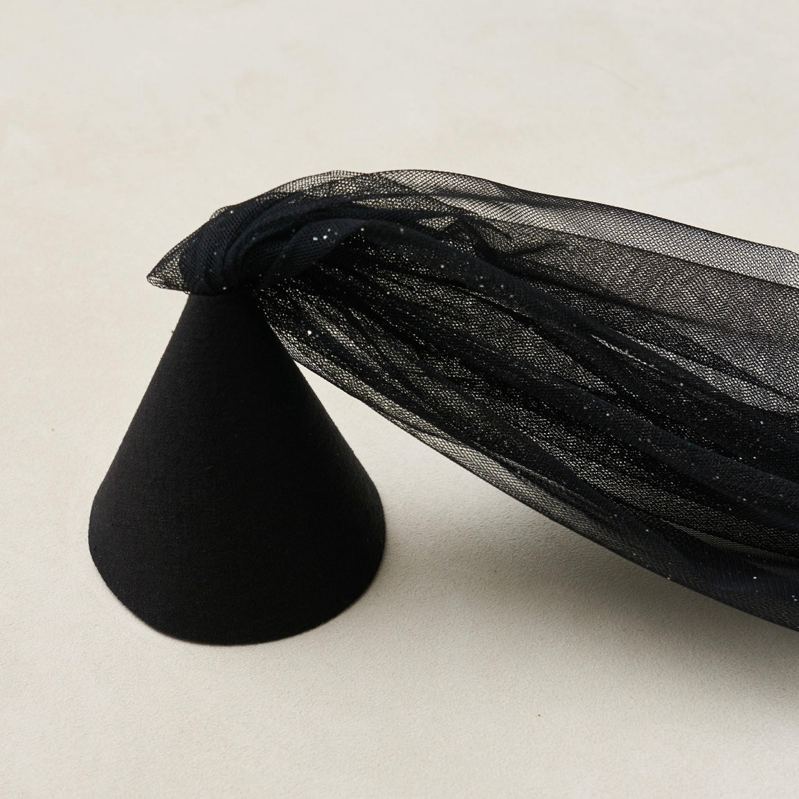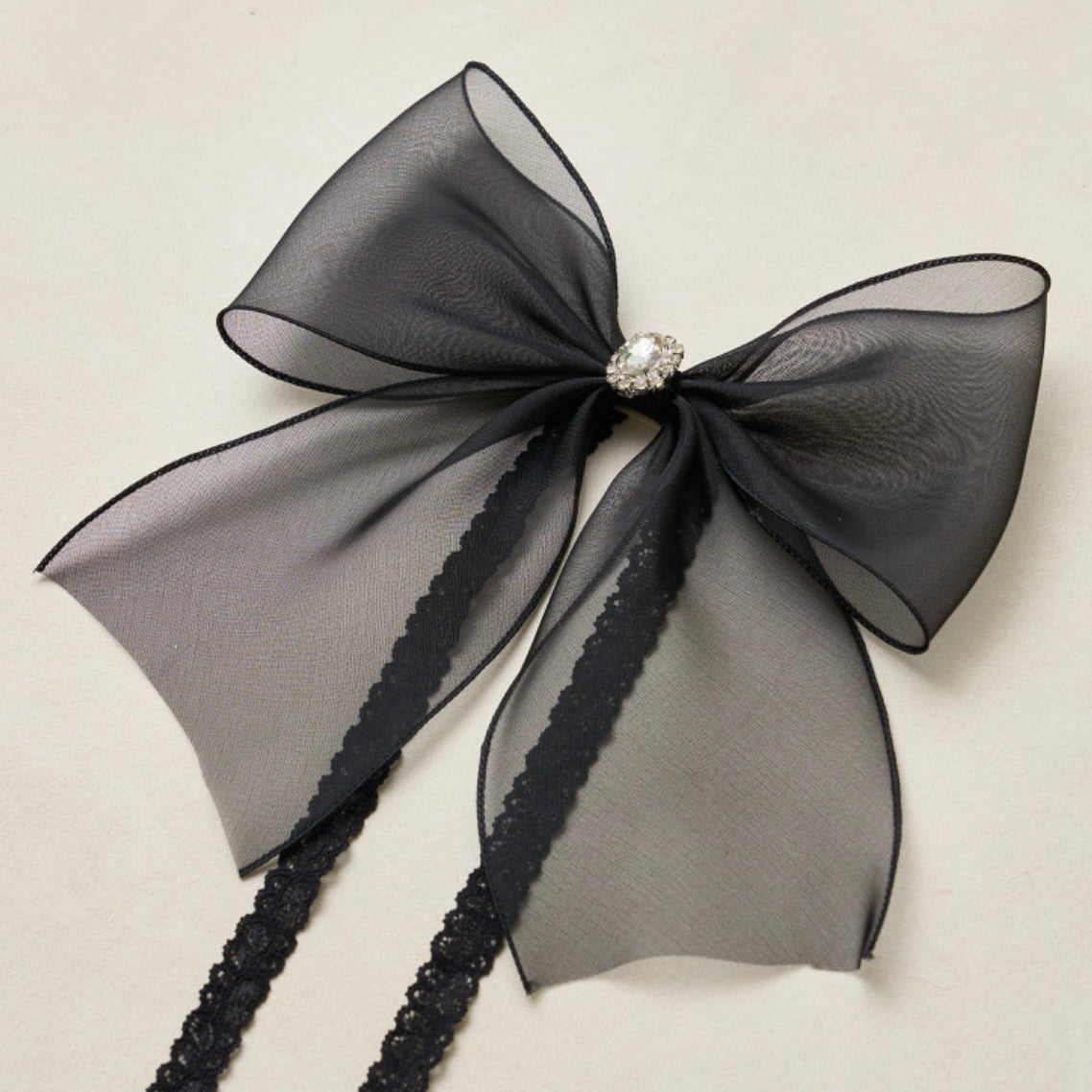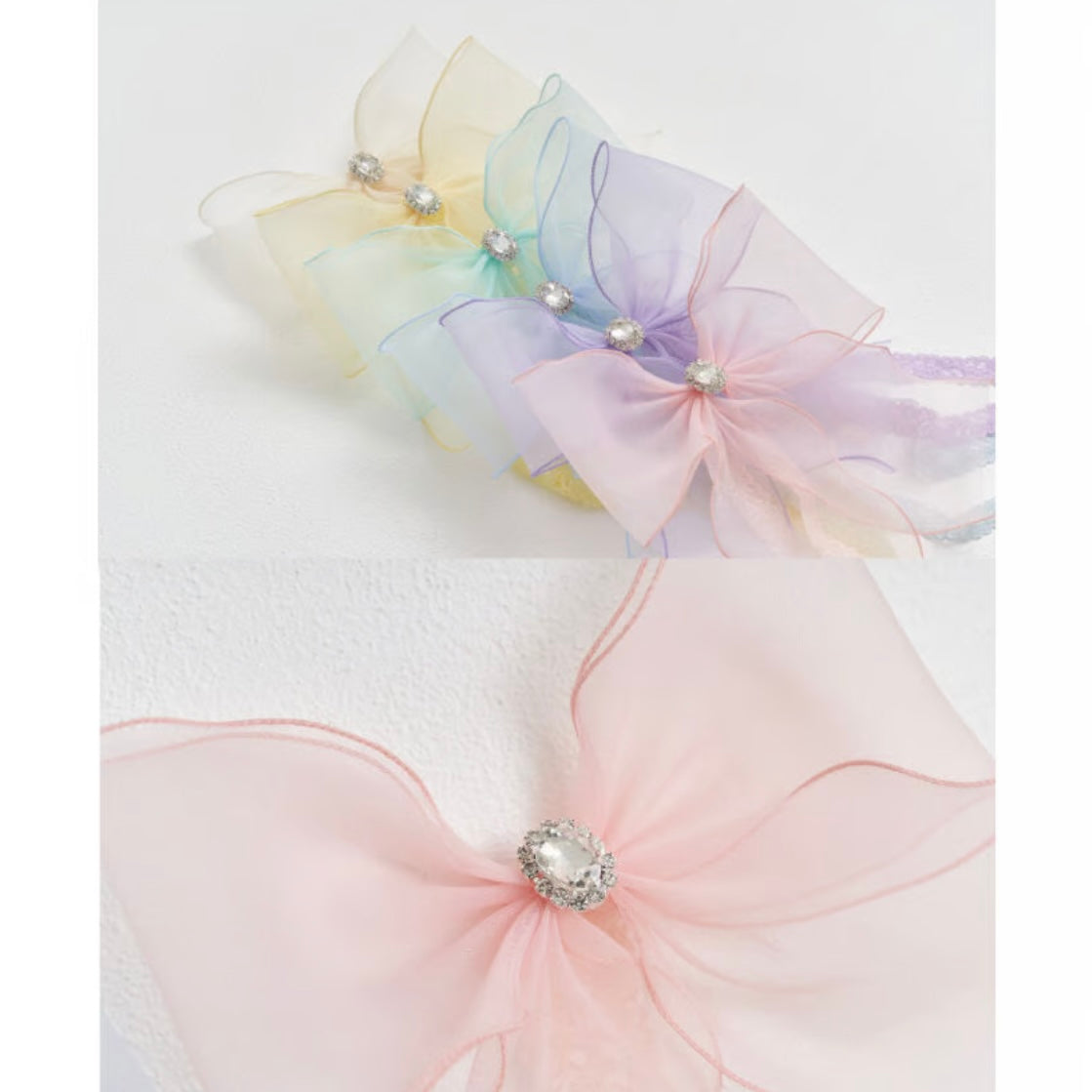 オーガンジーリボンで作つくられたリボンケープは、中心にキラキラ輝くジュエリーがついています。
